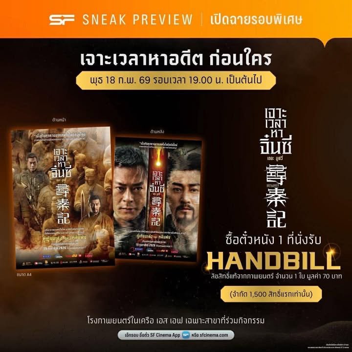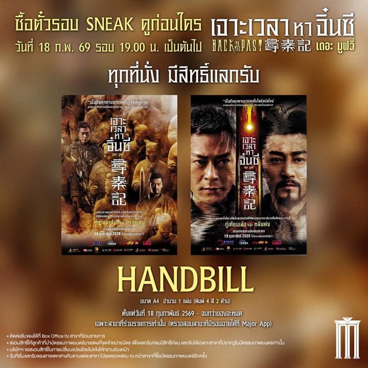 เปิดรอบพิเศษ วันพุธที่ 18 กุมภาพันธ์ เวลา 1 ทุ่มตรง (ในระบบเสียงภาษาจีน – บรรยายอักษรไทย) พร้อมรับ “แฮนด์บิลล์” ขนาด A4 งามระยับมูลค่า 70 บาทฟรีทุกที่นั่ง